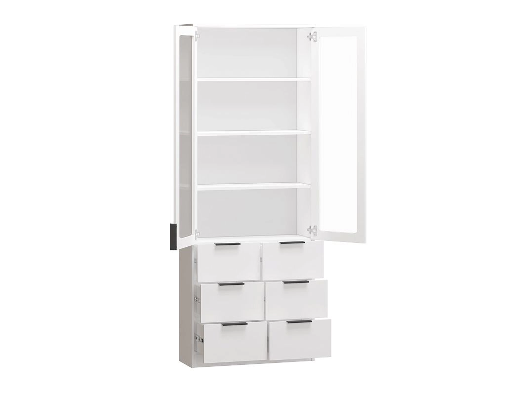 Комплектация: шариковые направляющие 100% выдвижения, петли без доводчиков, ручка мебельная торцевая СА-1 64ММ черный матовый, арт.39803, стекло простое