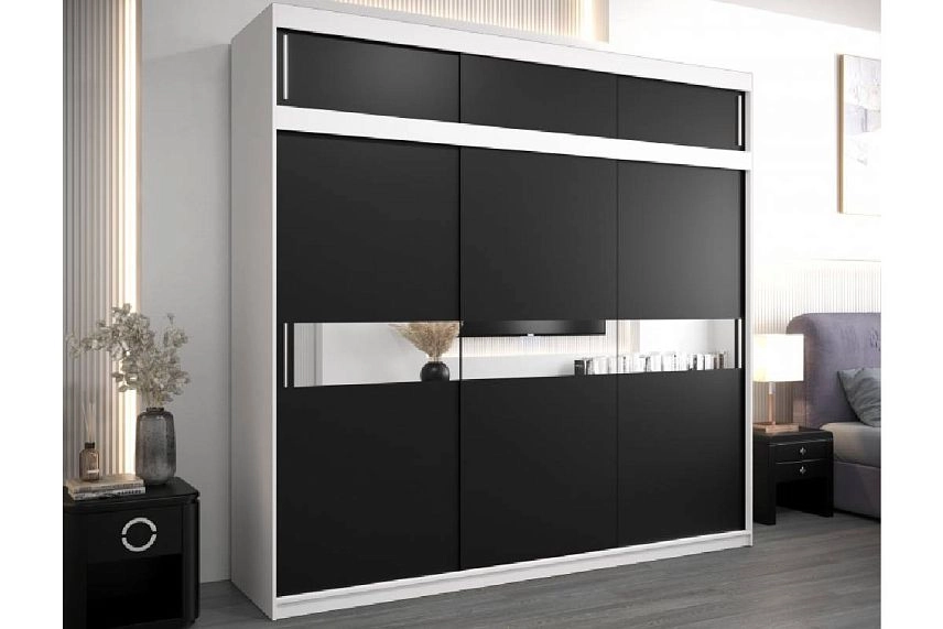 Шкаф-купе Бенито-3А в цвете черный 0190 pe с зеркальными вставками