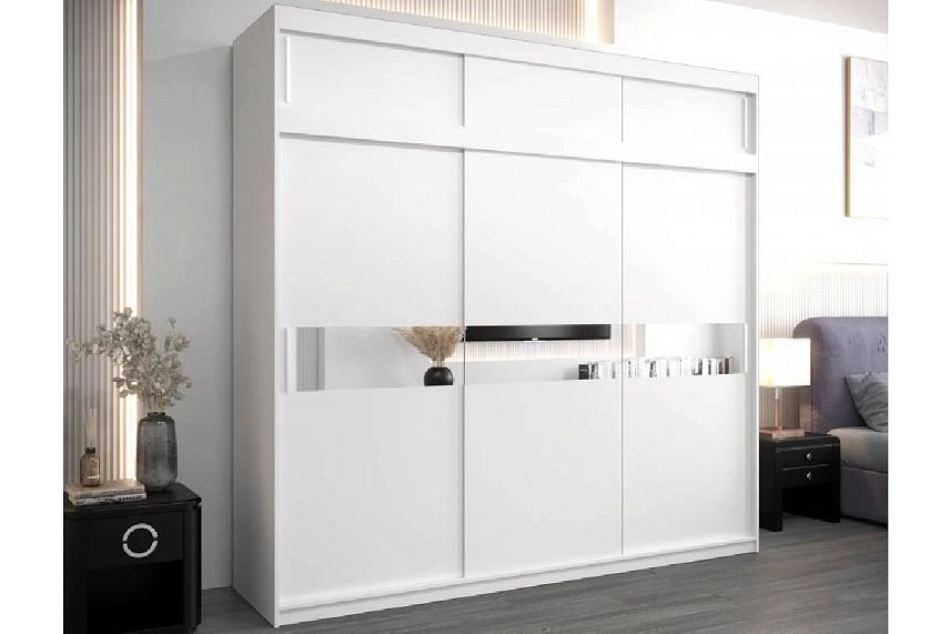 Шкаф-купе Бенито-3А в белом цвете с зеркальными вставками