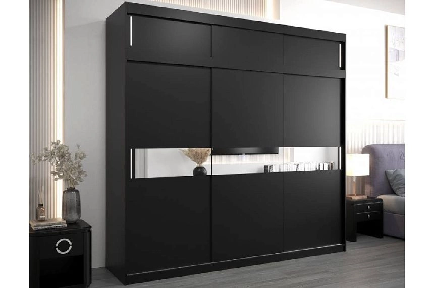 Шкаф-купе Бенито-3А в цвете черный 0190 pe с зеркальными вставками