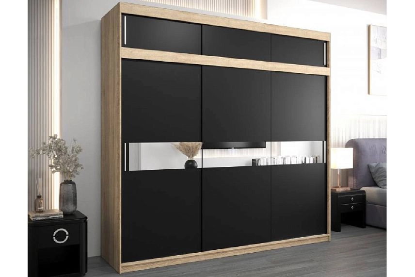 Шкаф-купе Бенито-3А в цвете черный 0190 pe с зеркальными вставками