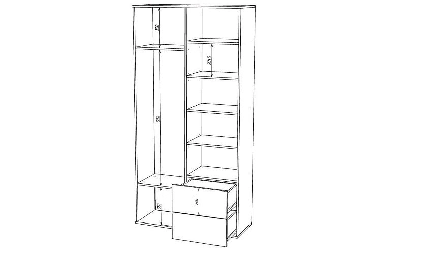 Наполнение: Полка + выдвижной кронштейн + Полка/ 4 полки + 2 ящика