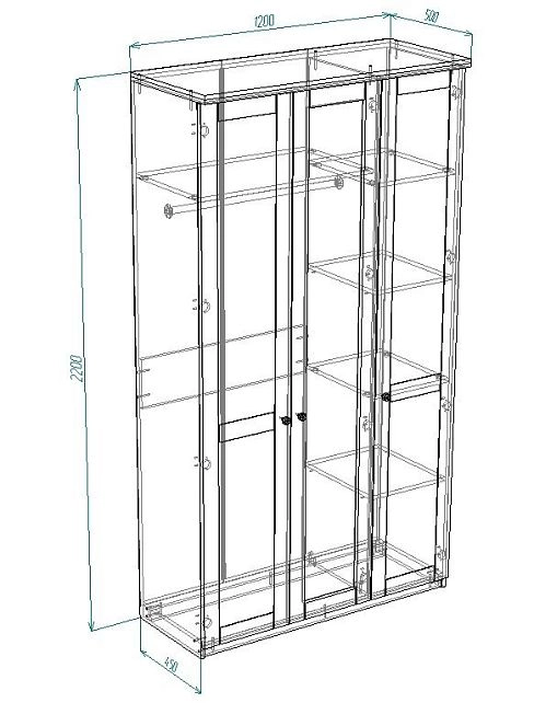 | Шкаф-купе 3 дверный (5-6 пачек) | 450 | 1400 | 700 |