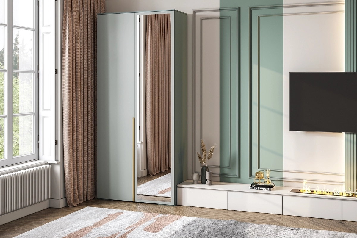 Шкаф распашной Солфорд 2 с зеркалом Зеленый айсберг