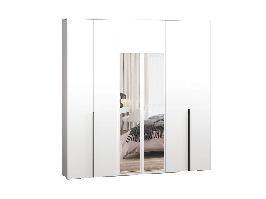 - Шкаф распашной Солфорд 6 с антресолью с зеркалами Белый