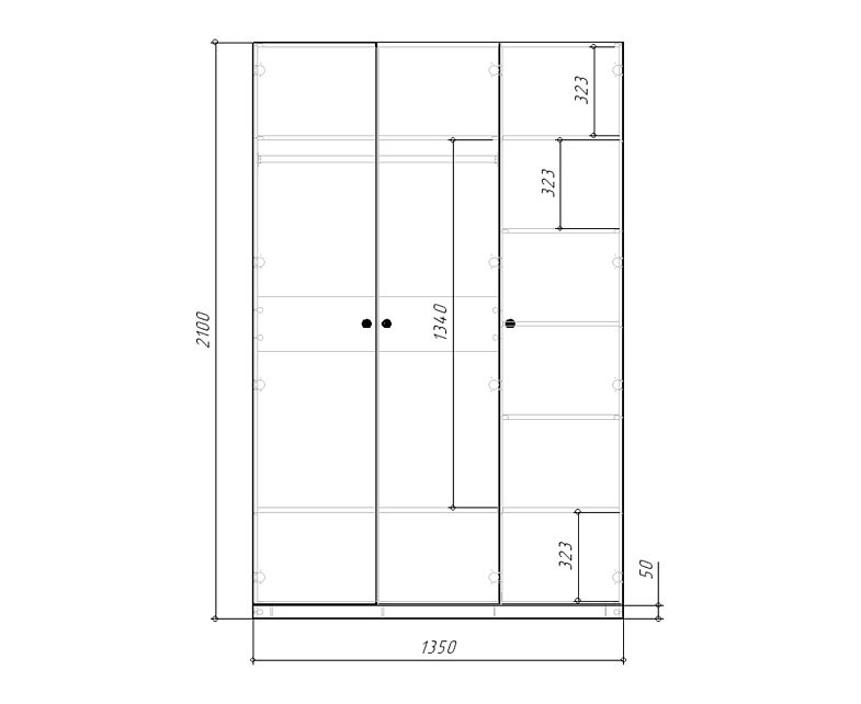 шкаф распашной Банни-3: 1350х2100х520
